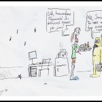 Karikatūras lieku reizi atgādina, ka, gatavojot ēdienu, jāraugās, lai ēdiens nepāriet pāri katla vai pannas malām un, ja tas tā noticis, aiz sevis jāsakopj; ka atkritumus drīkst mest tikai tiem paredzētā urnā un atkritumus no istabiņām studenti var paši aiznest līdz konteinerim, nevis tos atstāt koplietošanas telpās; ka, izmantojot koplietošanas telpu izlietnes, jāskatās, lai tās netiktu aizsprostotas ar jebkāda veida pārtikas vai sadzīves atkritumiem, bet, ja aizsprostojas, jāatrisina problēma; ka pēc nokārtošanās tualetes klozetpodā obligāti jānolaiž ūdens un mazgājoties dušas kabīnē, saudzīgi jāizturas pret dušas inventāru, kā arī regulāri jāsakopj sava istabiņa. Liekas, pašsaprotamas lietas, bet dažkārt saspringtajā studiju procesā students par šīm lietām piemirst.