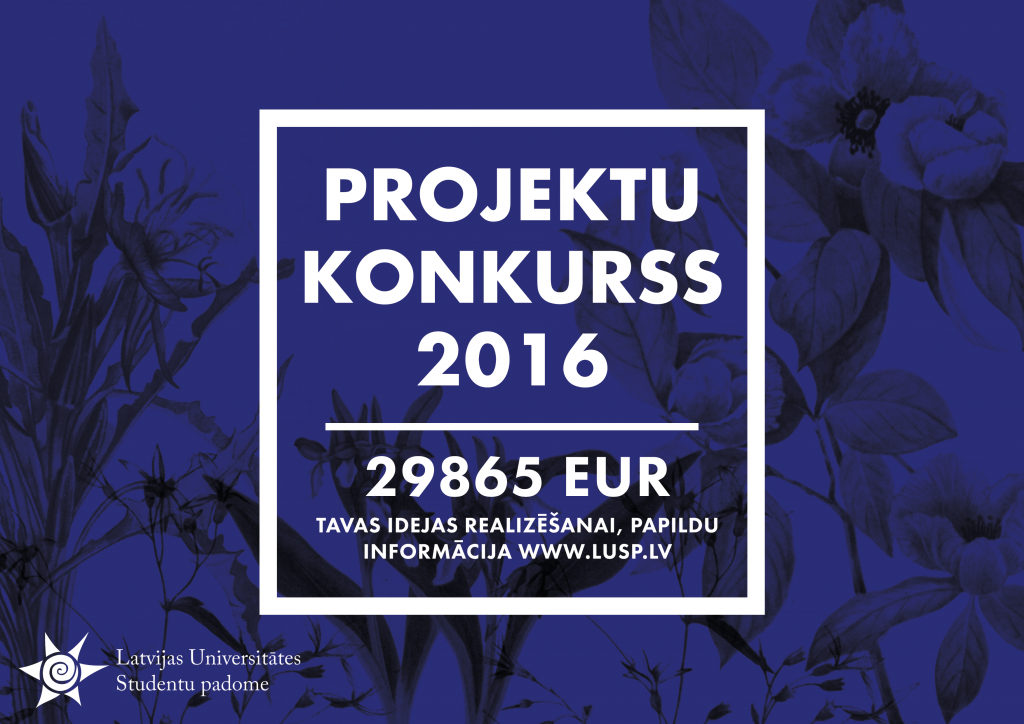 Latvijas Universitātes Studentu padome (LU SP) izsludina Latvijas Universitātes (LU) studentu Projektu konkursu. Projektu konkursa mērķis ir sekmēt LU studentu iesaistīšanu akadēmiskajās aktivitātēs, veicināt jaunrades un pētniecības projektus, atbalstīt kultūras, sporta un sociālo projektu īstenošanu, kā arī veicināt studentu aktivitāti un līdzdalību aktuālu problēmu risināšanā, uzlabojot studiju procesu un veicinot jaunu ideju realizēšanu.
