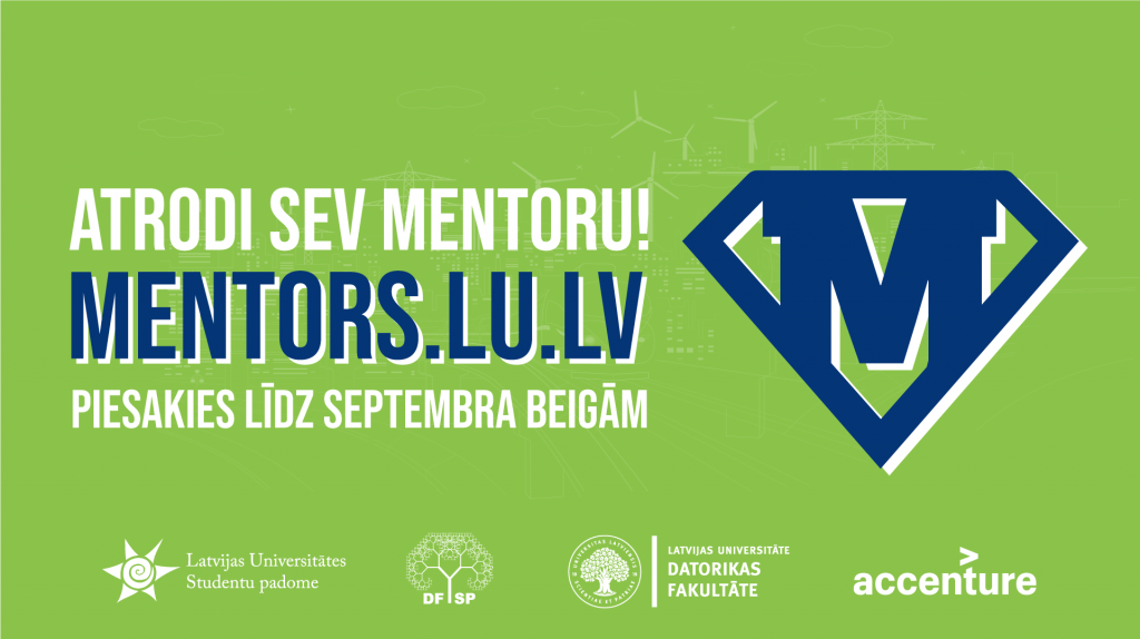 Student! Ja vēl rudens semestrī studēsi Latvijas Universitātē, DF Studentu pašpārvalde, Datorikas fakultāte un LU Studentu padome sadarbībā ar Accenture Latvia un Studentu servisu aicina Tevi kļūt par mentoru topošajiem pirmkursniekiem.